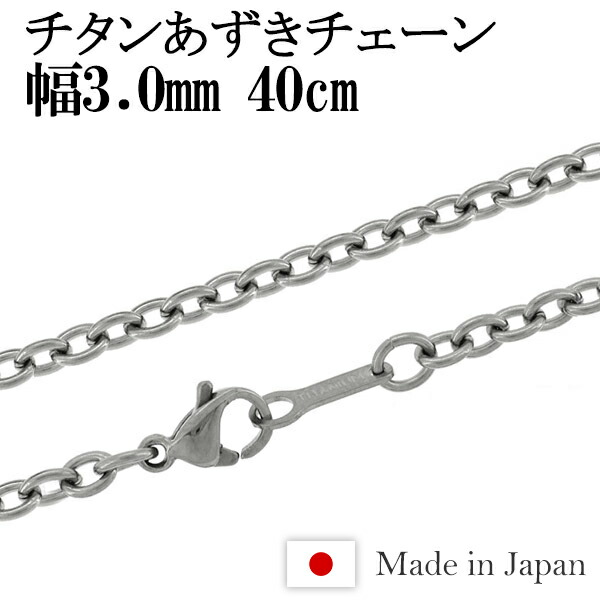 チタン ネックレス チェーン あずき 幅3.0mm 40cm 日本製 金属アレルギー アレルギーフリー チタンネックレス チタンチェーン 人気 おしゃれ チェーンのみ