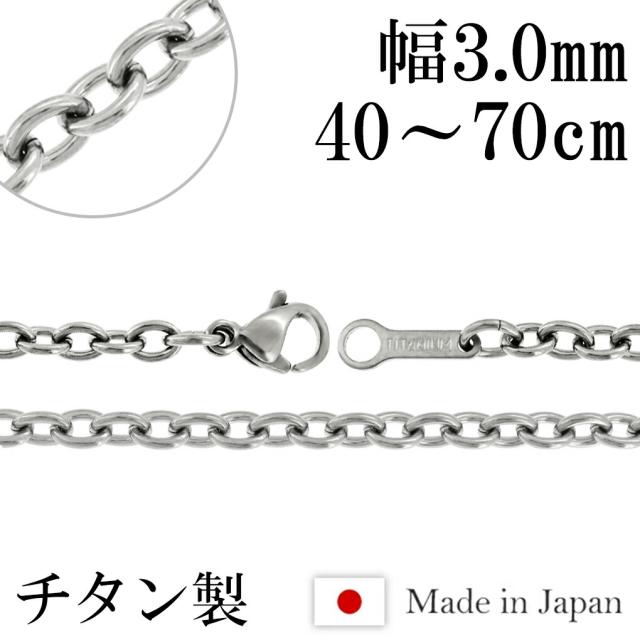 ネックレス チェーン チタン あずき 幅3.0mm 40cm〜70cm あずきチェーン 小豆 チタンネックレス ネックレスチェーン 日本製 純チタン チタンチェーン