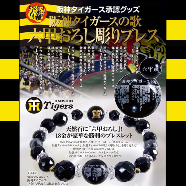 阪神タイガース承認18金&オニキス「六甲おろし刻印ブレス」(球団公式,メンズ,ブレスレット,応援歌,甲子園,天然石)