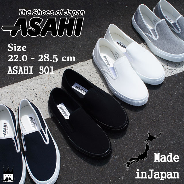 送料無料 アサヒ ASAHI メンズ レディース ジュニア スリッポン 501 日本製 スニーカー キャンバスシューズ シンプル カジュアル 無地 室