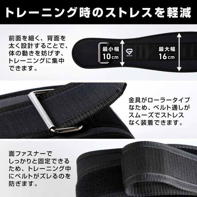 装着することで怪我を未然に防ぐことができますので、ウエイトリフティング時には必須のベルトとなっています。