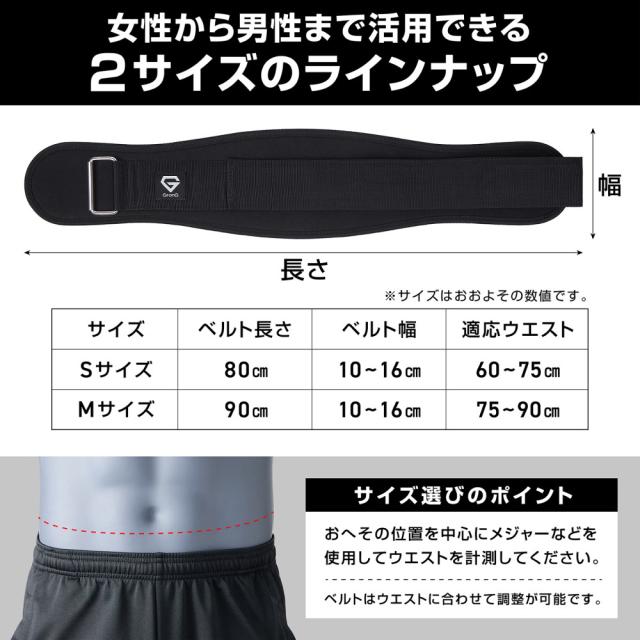 - ウエスト90オーバーなのでMサイズにしてみました。 それでもベルトに余裕があるので、トレーニングの時絞って巻きたいならSサイズの方がいいかもしれないです痩せたら絞りきれなくなってしまいます。