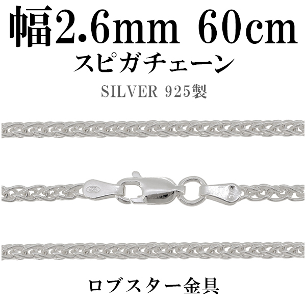 シルバーチェーン ネックレス チェーン スピガチェーン 幅約2.6mm 60cm シルバーアクセサリー シルバー925 銀 シルバー925チェーン チェーンのみ