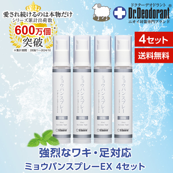 送料無料メール便発送 ワキガ みょうばん ミョウバン スプレー 制汗剤 デオドラント 足 対策 ドクターデオドラント ミョウバンスプレーEX 4本