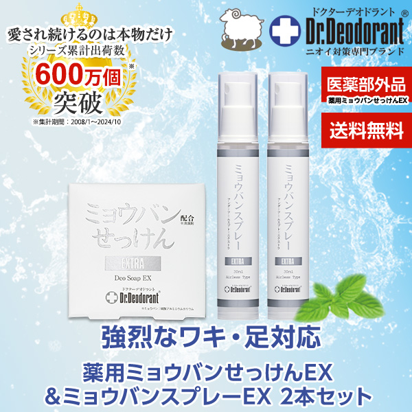 送料無料メール便発送 ワキガ みょうばん ミョウバン スプレー 石鹸 せっけん 制汗剤 デオドラント 足 対策 ドクターデオドラント ミョウバンスプレー 2本 薬用ミョウバン石鹸 1個