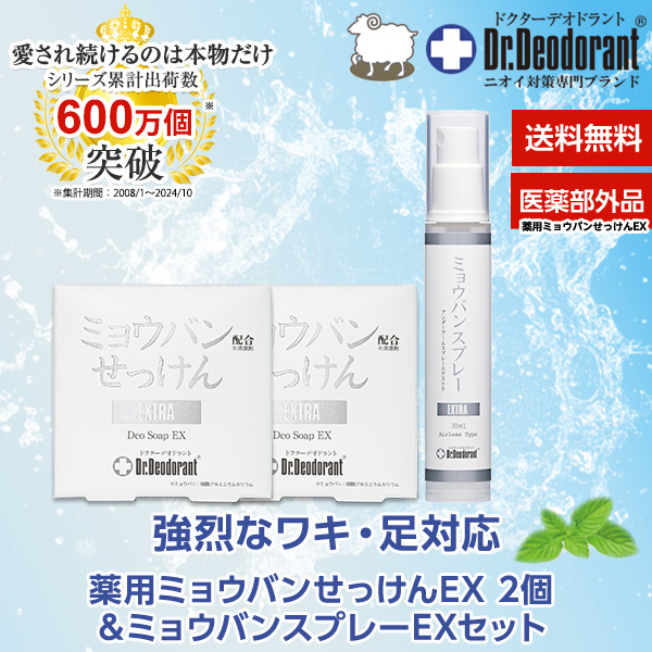 送料無料 ワキガ みょうばん ミョウバン スプレー 石鹸 せっけん 制汗剤 デオドラント 足 対策 ドクターデオドラント ミョウバンスプレー 1本 薬用 ミョウバン石鹸 2個【医薬部外品】