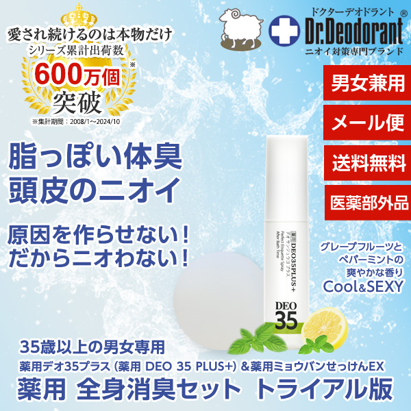 商品名:脂っぽい体臭 頭皮のニオイ専用スプレー ドクターデオドラント 薬用DEO 35 PLUS+(デオサンジュウゴ プラス)