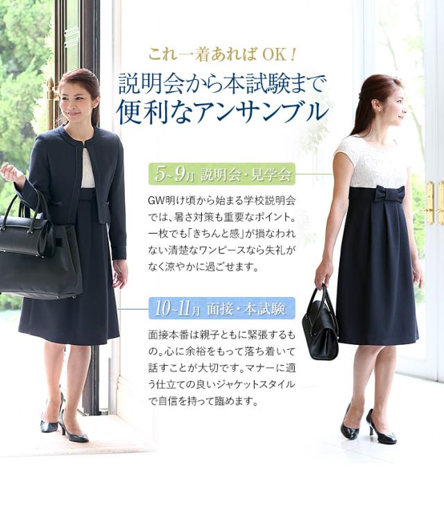お受験スーツ ママ 母 合格 面接 紺 濃紺 レディース ワンピース フォーマル 入園式 卒園式 入学式 卒業式 学校見学会 セレモニー 七五三 お宮参り お受験 スーツ 大きいサイズ アンサンブル 女性用 KS-001 送料無料
