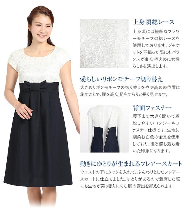 清楚さと華やかさを両立した優秀レースワンピースは、お手持ちのブラウスやショールとの相性も抜群。季節・目的によって様々な着回しが可能です。自然に体に馴染み、どの角度からも美しく見える完璧なボディラインを作り出してくれます。ほど良く広がる裾がお母様の上品で優しい印象をより引き立てます。