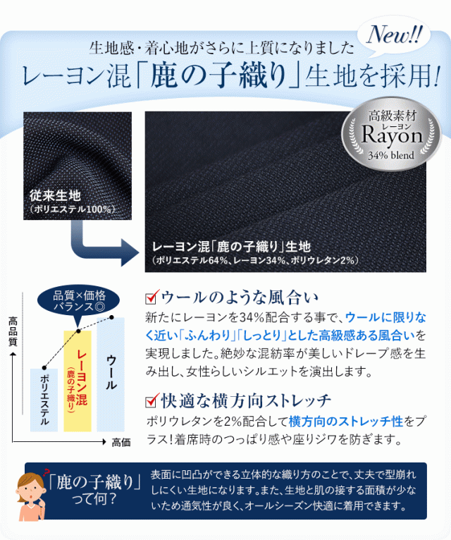 | 表地 | ポリエステル64%、レーヨン34%、ポリウレタン2% |