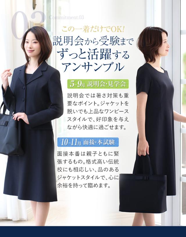 [お受験スーツ ママ 母 合格 面接 紺 濃紺 レディース ワンピース フォーマル 入園式 卒園式 入学式 卒業式 学校見学会 セレモニー 七五三 お宮参り お受験 スーツ 大きいサイズ アンサンブル 女性用 NK-1002 送料無料]