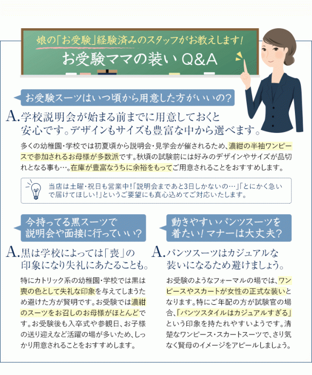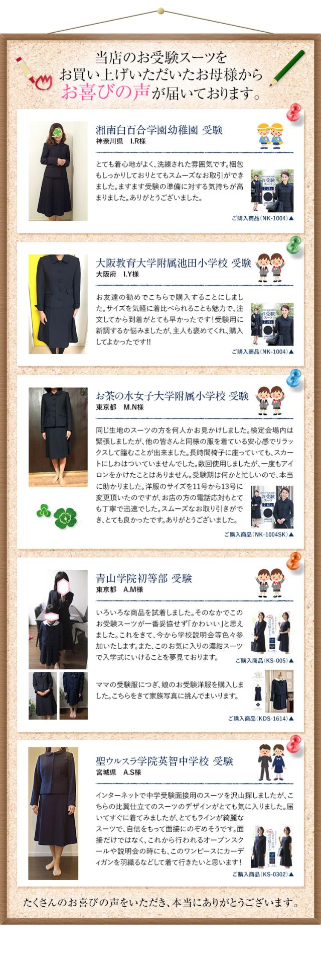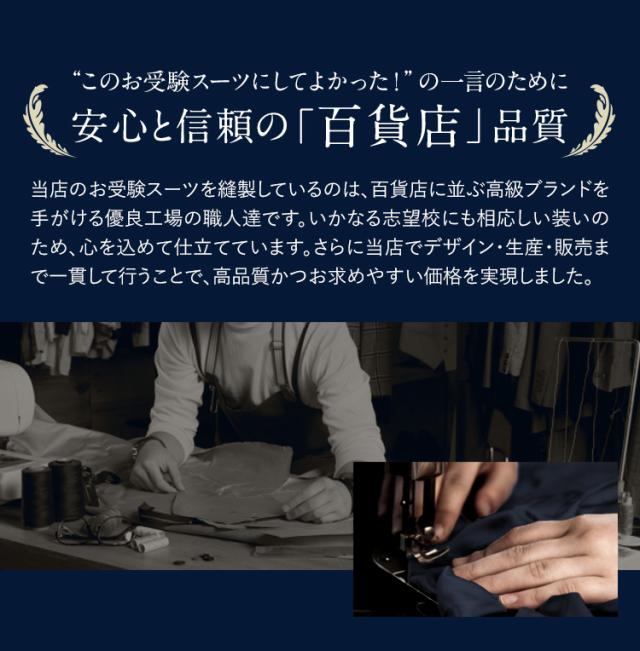 ・当店のお受験スーツを縫製しているのは、百貨店に並ぶ高級ブランドを手がける優良工場の職人達です。いかなる志望校にも相応しい装いのため、心を込めて仕立てています。さらに当店でデザイン・生産・販売まで一貫して行うことで、高品質かつお求めやすい価格を実現しました。