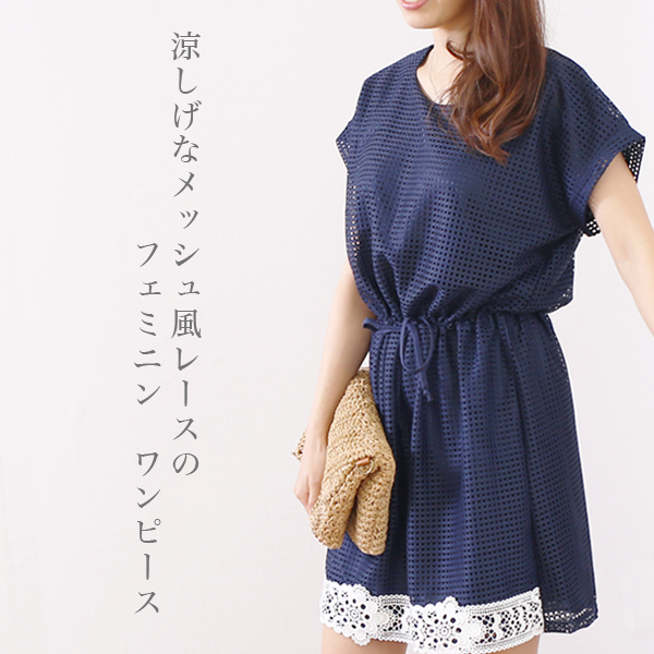 レディース メッシュ風レース ワンピース