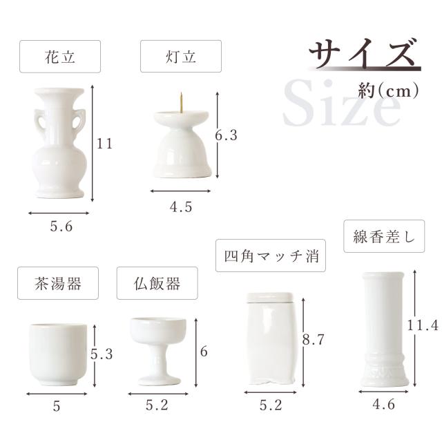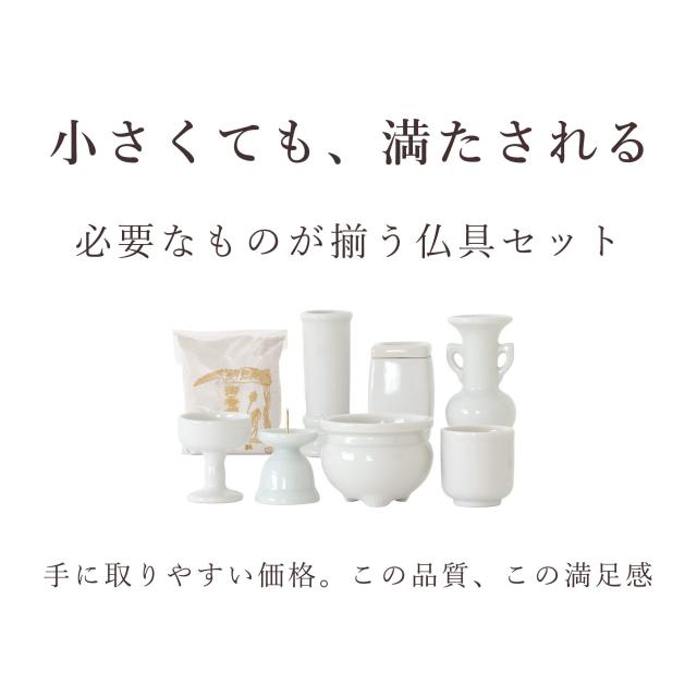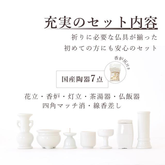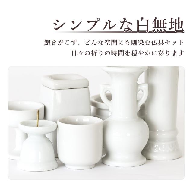 仏具 セット 陶器7点 (白 無地 ホワイト) + 香炉灰 仏具セット おしゃれ モダン 線香立て マッチ消 国産 日本製 仏壇セット モダン仏具 モダン仏壇 お盆 お彼岸 お墓参り お供え 供養 法事 法要