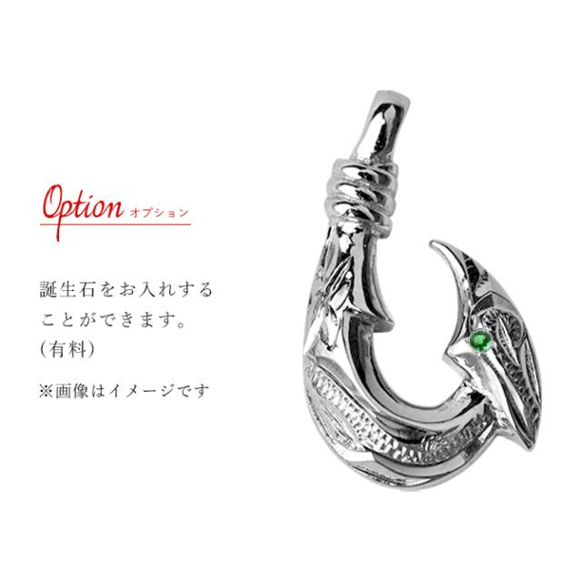 ハワイアンジュエリー ネックレス フィッシュフック モアナ ネックレス 誕生石入れ可 カレイキニ Sサイズ ロジウムコーティング シルバー925 ギフトラッピング可能セット チェーン 長さ選べる 入学式 就職 お祝い 新生活 【品番:CG-SP3406】
