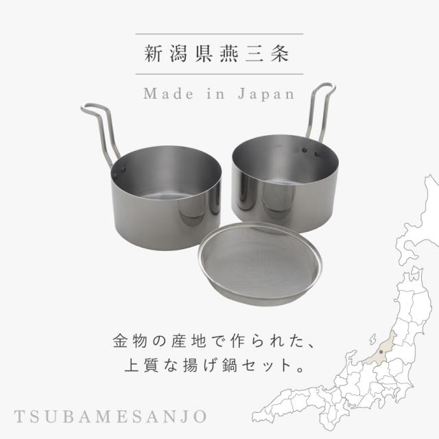 付属の網皿は、揚げ物の油切りと油のろ過を兼ねた仕様で、よりきれいに油を使いたいときはキッチンペーパーを敷いて使うことも可能。油の処理が面倒になりがちな毎日の揚げ物も、無理なく続けられます。素材には丈夫で耐熱性・耐食性に優れたステンレスを使用し、金属加工の産地として有名な新潟県燕三条で製造された、日本製ならではの安心品質。