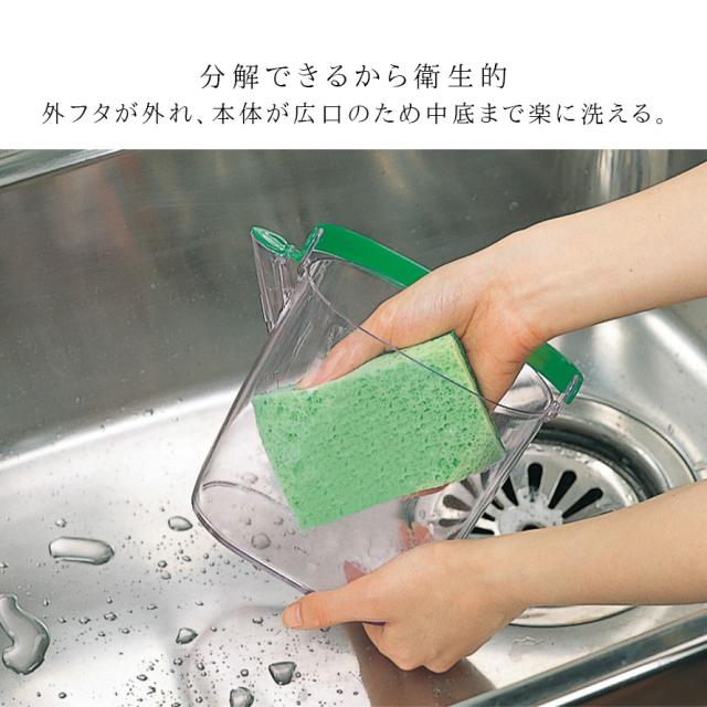 外フタが外れ、本体が広口のため中底まで楽に洗えるので衛生的です。