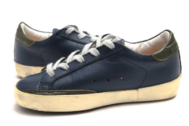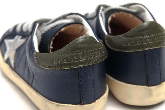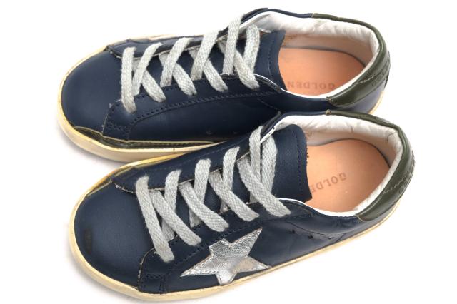 キッズサイズのGOLDEN GOOSEのスニーカーです。ユーズド加工など本格的な造りです。