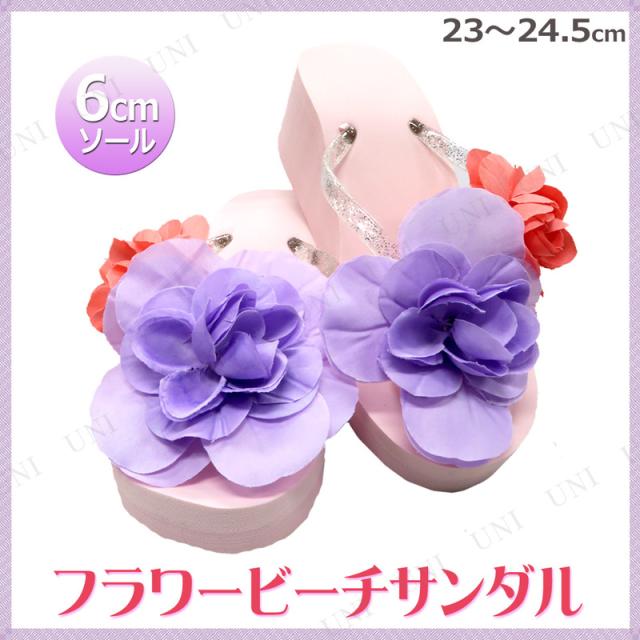 厚底ビーチサンダル パステルパープル SHO-BI プール用品 ビーチグッズ コサージュ付き ウェッジソール