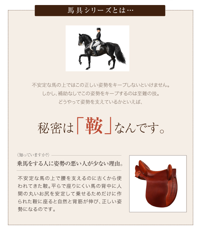 従来品に比べ背もたれが付き、座りやすさUP!馬の鞍の安定構造をマットに再現する事で、良い姿勢で・長時間・安定して・楽に座ることができる!座面の形状はもちろんの事・安定感・やわらかさ・ホールド感にもこだわった3層構造を採用しました!さらに背面の腰椎サポートアーチ・ラウンド形状により、座った時に腰椎まわりをしっかり支えることができるようになりました。腰が気になる方、長時間座ることが多い方、そんなあなたにオススメです!座椅子として座るのはもちろんの事、オフィスチェアーなど様々な場面で使う事が出来ます。3人の匠が知恵と技を結集する事で、まさに1点ものと言えるマットになっています!