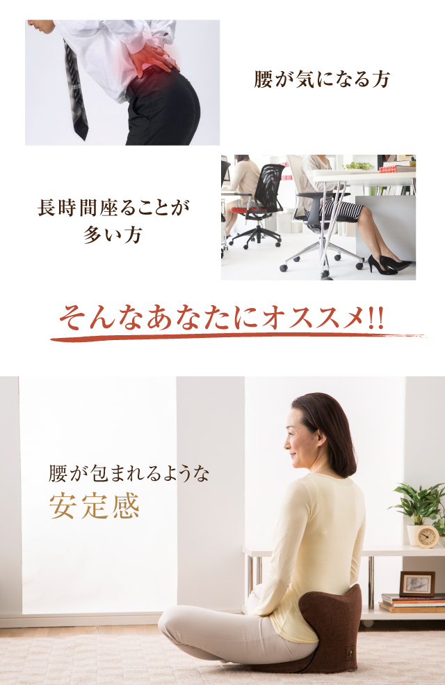 従来品に比べ背もたれが付き、座りやすさUP!馬の鞍の安定構造をマットに再現する事で、良い姿勢で・長時間・安定して・楽に座ることができる!座面の形状はもちろんの事・安定感・やわらかさ・ホールド感にもこだわった3層構造を採用しました!さらに背面の腰椎サポートアーチ・ラウンド形状により、座った時に腰椎まわりをしっかり支えることができるようになりました。腰が気になる方、長時間座ることが多い方、そんなあなたにオススメです!座椅子として座るのはもちろんの事、オフィスチェアーなど様々な場面で使う事が出来ます。3人の匠が知恵と技を結集する事で、まさに1点ものと言えるマットになっています! 【カラー】ブラウン、パーシモンレッド 【商品サイズ】41×33×30cm 【材質】芯材:ポリプロピレン クッション材:ポリウレタン カバー:ポリエステル 滑り止め材:アクリル樹脂 【生産国】日本