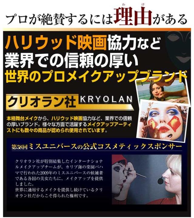 これさえあれば、フェイスもボディもパーフェクトカバー!汗や水に強いからスポーツ界でも大活躍。英国赤十字では、ケガの跡やアザなどを隠すために、ずっと悩んできた方のカバーメイクに使用されているんです!ドイツ生まれの化粧品メーカーで、完璧で完全なカバー力と心地良い使用感で、世界各国で愛用されています!商品のクオリティーの高さは各界のプロも大絶賛!あなたもぜひ一度、クリオラン社の技術を実感してみて下さい。 【セット内容】6色セット 【内容量】20ml 【原産国】ドイツ
