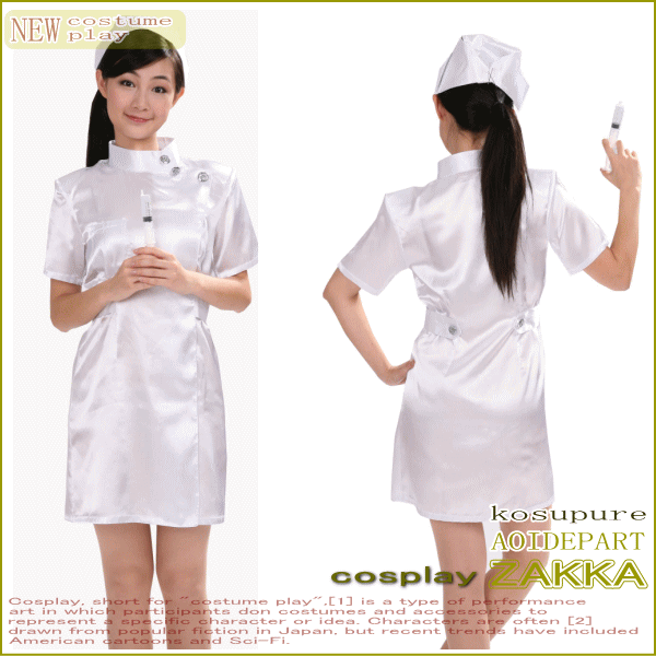 ナースの本能 白♪光沢のあるサテン素材のナース服♪☆のコスプレシリーズ♪【コスプレ】【衣装】【コスチューム】【送料無