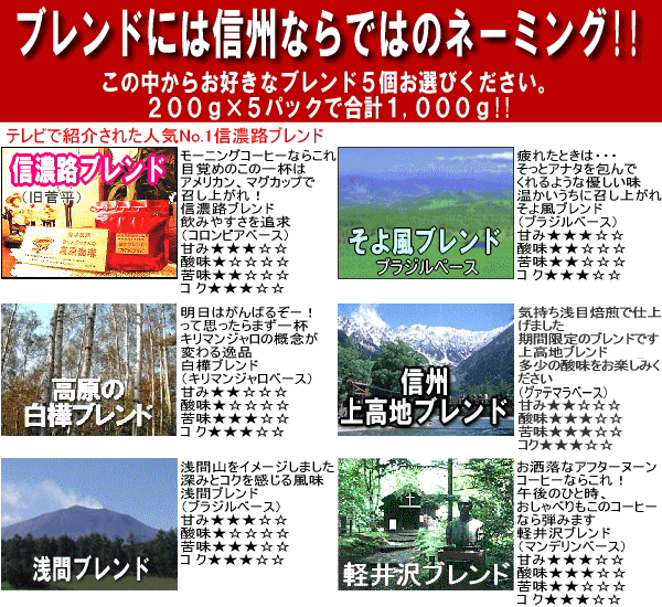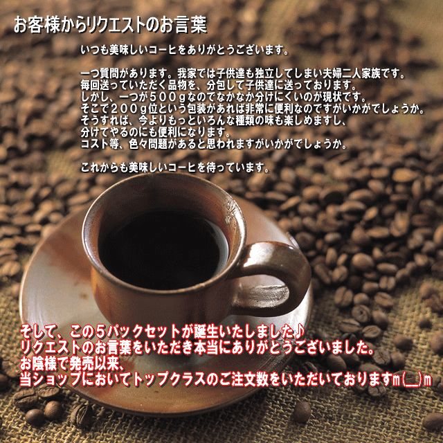 焼き立てコーヒー 便利な200g×5セット合計1Kg いろいろ選べる♪ お客様よりリクエストを商品化!【送料無料】【全国送料無料】