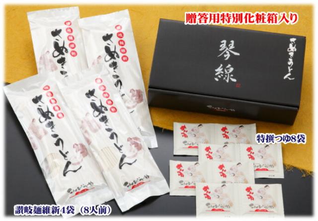ご贈答用に!【送料無料】「琴線」本場 さぬきうどん セット(8人前)つゆ付 贈答用特別化粧箱入り お中元 お歳暮 内祝い ギフト のし可 agesugi_sgu