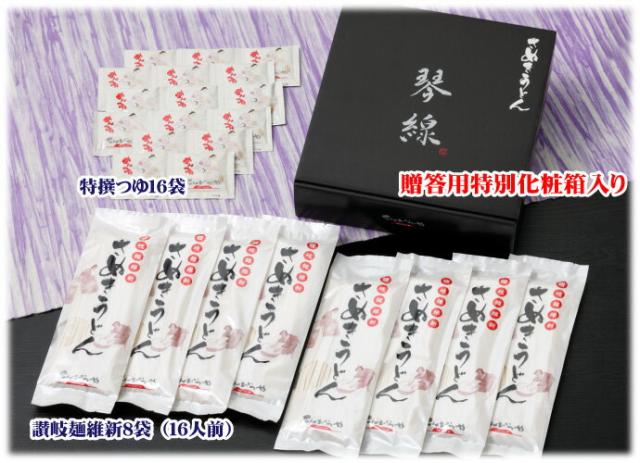 ご贈答用に!【送料無料】「琴線」本場 さぬきうどん セット(16人前)つゆ付 贈答用特別化粧箱入り お中元 お歳暮 内祝い ギフト のし可 agesugi_sgu