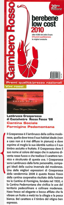 [フォルミージネ・ペデモンターナ・ランブルスコ・グラスパロッサ・ィ・カステルヴェトロ・ロッソ・フォスコ・セッコ]!!!!