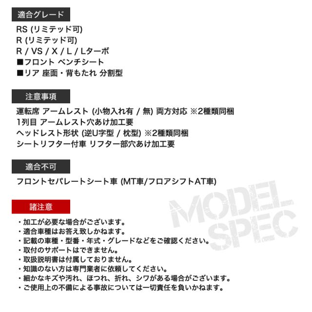 | グレード・仕様 | RS (リミテッド可)R (リミテッド可) R / VS / X / L / Lターボ■フロント ベンチシート■リア 座面・背もたれ 分割型 |