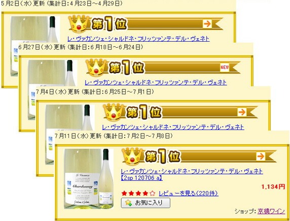 週間楽天ワイン売上ランキング イタリア・ヴェネトで第1位!!