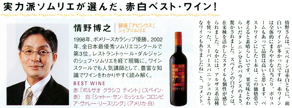 大人のライフスタイル・マガジン[一個人]にてかつて特集された『極旨ワイングランプリ』。見事【頂上ワイン】に輝いたのがこの[ボルサオ・クラシコ・ティント]でした!当店でも多くのお客様に支えられロングセラーとなっており、もはやレジェンド級の超コスパ赤ワイン!!