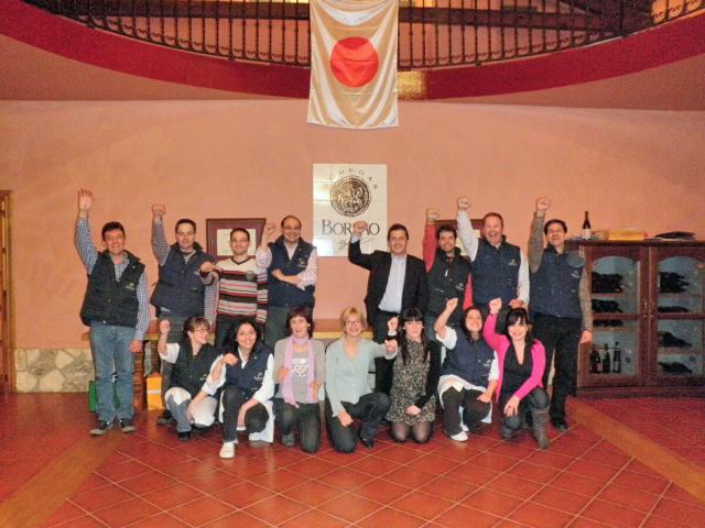 「ボルサオを愛飲してくださる日本のお客様へ、感謝の気持ちを込めて」ボデガス・ボルサオの皆さん。