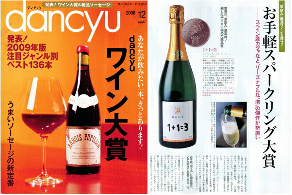 あの「食こそエンターテインメント!」でお馴染み、超人気グルメ雑誌『dancyu』2008年12月号にて特集された【“家飲み”最適ワインを探せ!お手軽スパークリング大賞】。
