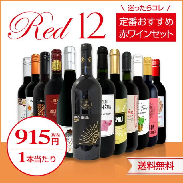 12本全て赤ワイン!!厳選赤が勢ぞろい!!思いっきり満喫してください!!
