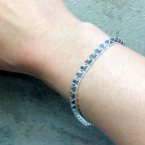 しなやかな装着感が際立つ、ピラミッドスタッズモチーフのブレスレット。