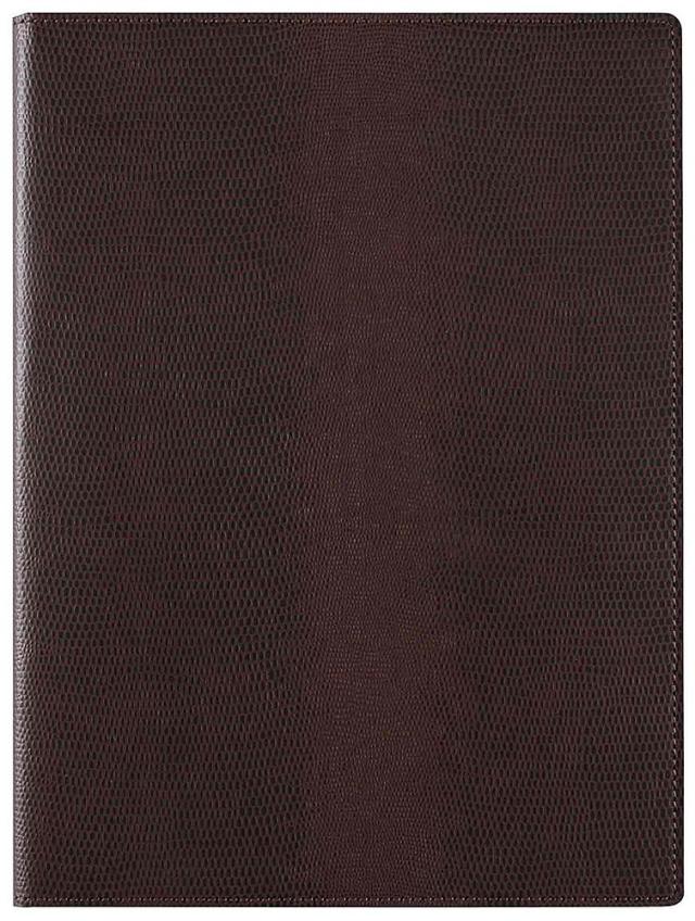 上質な雰囲気のある丈夫なリザード柄のクロスペーパーを使用しているノートパッド。A5サイズ。本体を回転させることにより利き手を選ばない両利き用(特許登録済み)。左右どちらもノート取り付け可能。ノートもレポート用紙も装着可能なノートパッド。