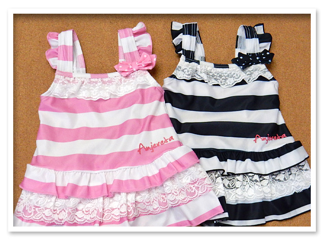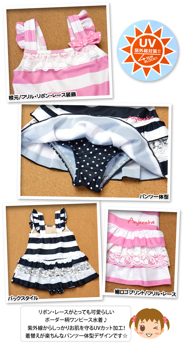 【送料無料】ベビー 水着 スイムウエア Anjereta アンジェリータ 女の子 ワンピース UVカット ボーダー柄 ロゴ 女児 ベビー 【メール便対応】