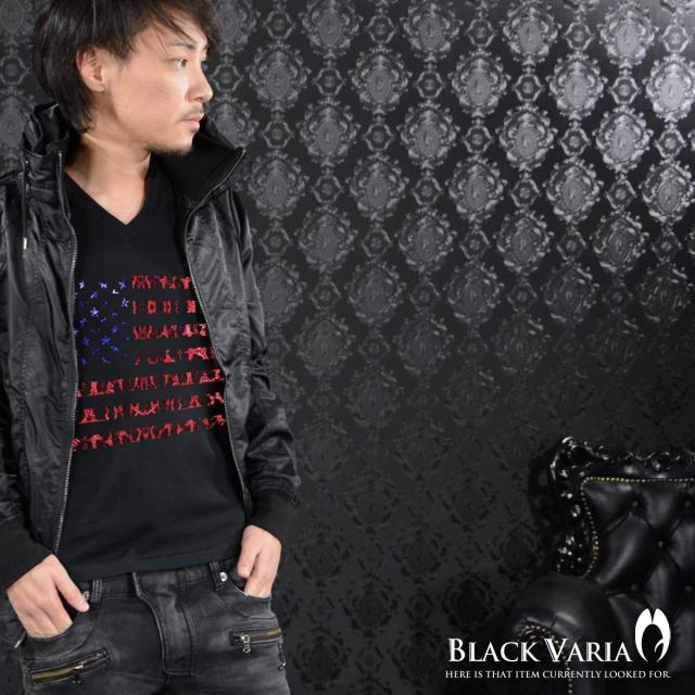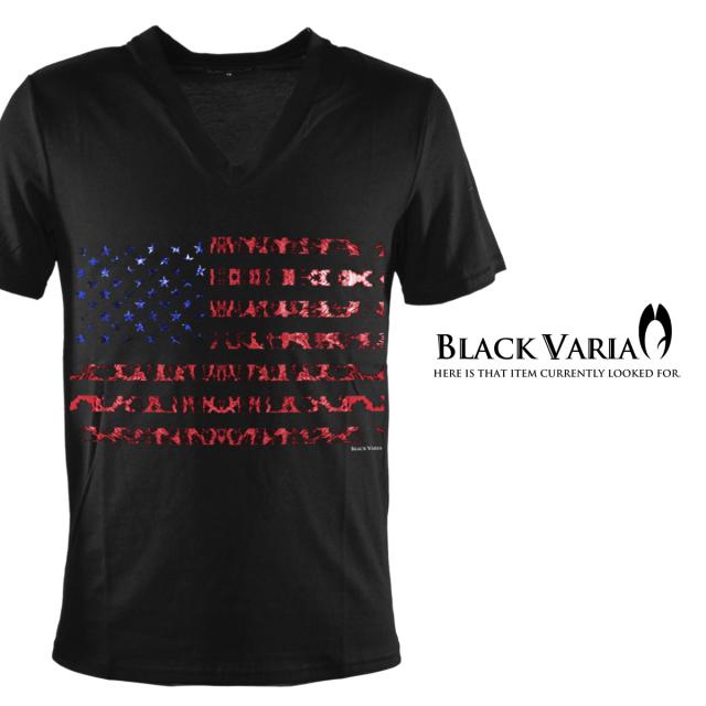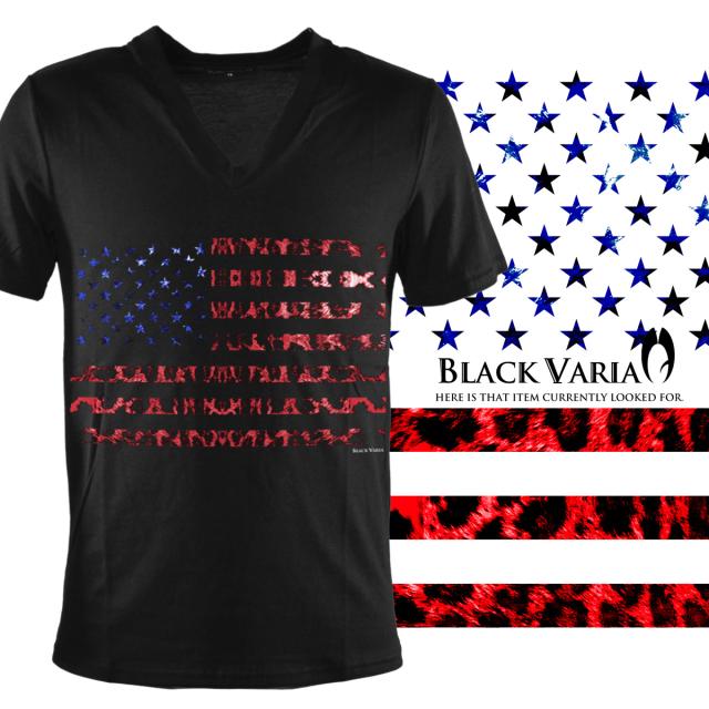 メール便可/1枚まで Tシャツ 半袖 Vネック 星条旗 星 国旗 アメリカ USA アメリカン ヒョウ 豹 メンズ(ブラック黒レッド赤) zkk050