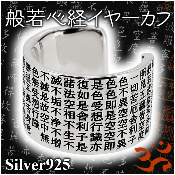 イヤーカフ イヤーカフス イヤークリップ ピアス【当店オリジナル】般若心経を克明に刻んだシルバーイヤーカフ!