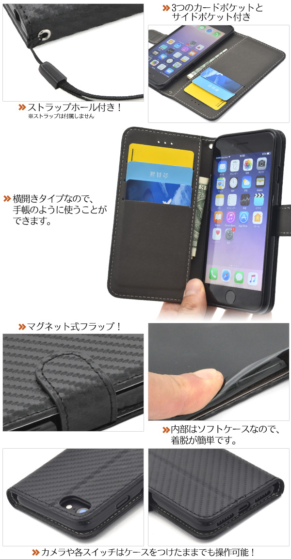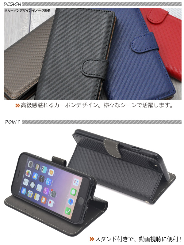 スマホケース iPhone8 iPhone7 iPhoneSE(第2世代 / 第3世代)SE2 SE3 第二世代 第三世代 手帳型 カーボンデザイン レザーケースポーチ アイフォン用 保護カバー シンプル 横開き
