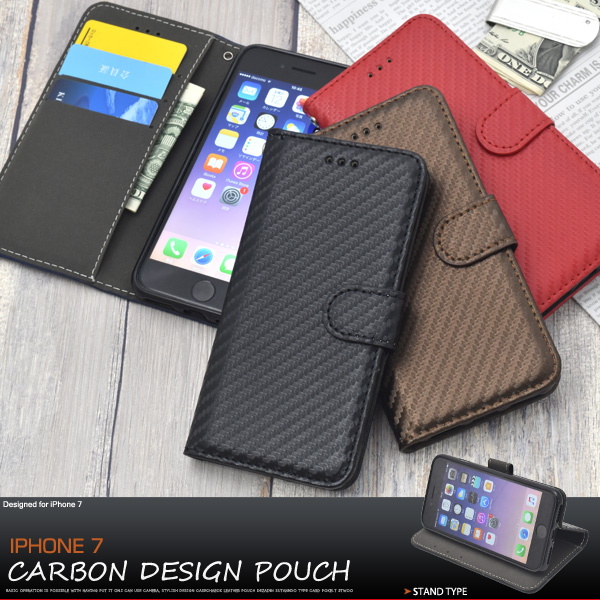 カーボンデザインのiPhone8/iPhone7/iPhoneSE(第2世代・第3世代)用スタンドケースポーチ。