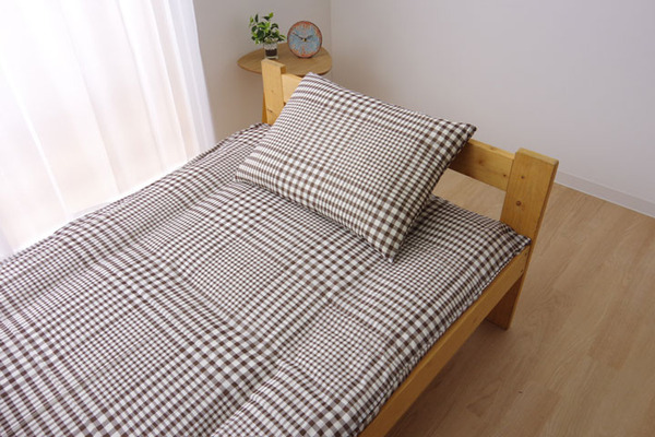 チェックが特徴の敷きカバーです。なめらかで柔らかいタッチ感に仕上げました。ご家庭の洗濯機で丸洗い可能です。(洗濯ネット使用)