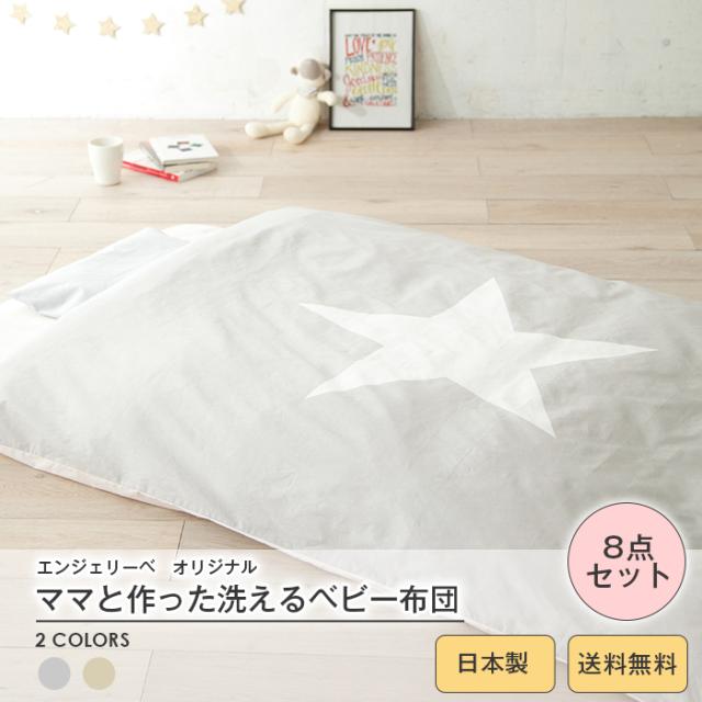 ベビー布団 日本製 Angeliebeオリジナル ママと作った ベビー布団8点 セット STAR 赤ちゃん 寝具 洗える かわいい 布団 出産準備 新生児