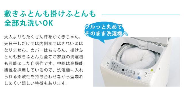 中わたは洗えるウォッシャブルわたを使用しているので、ご家庭でお洗濯ができ、いつでも清潔にお使いいただけます。
