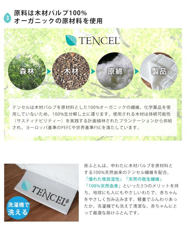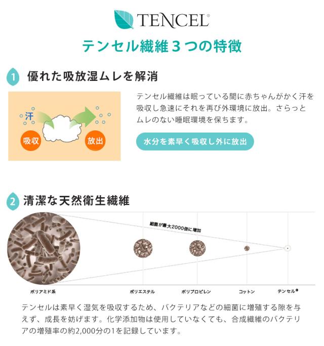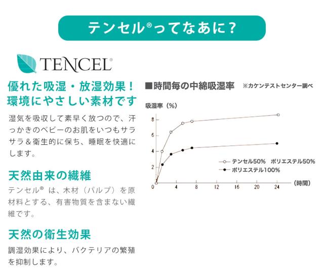 ●中綿には天然素材テンセル(R)を使用。吸水性に優れているので、汗かきなベビーにはぴったりです!