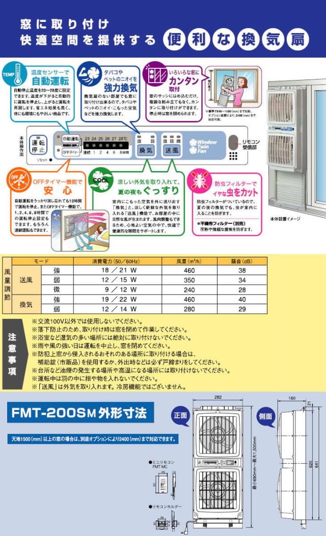 在庫あり FMT-200SM 高須産業 TSK ウインドウツインファン 同時給排形 ミニリモコン付