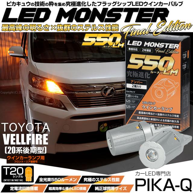 トヨタ ヴェルファイア (20系 後期) 対応 FR ウインカーランプ T20s MONSTER 550lm アンバー 2個 5-D-7